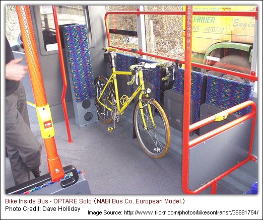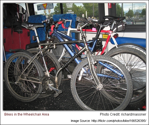 北加州,當車頭前方的自行車架已滿,有些公車司機也允許腳踏車放在車上的輪椅區。